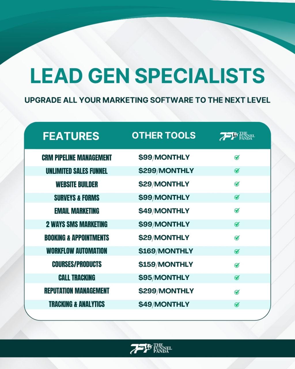 The Funnel Panda offers sales funnel creation, email marketing automation, CRM and lead management, marketing automation, analytics, and reporting.
